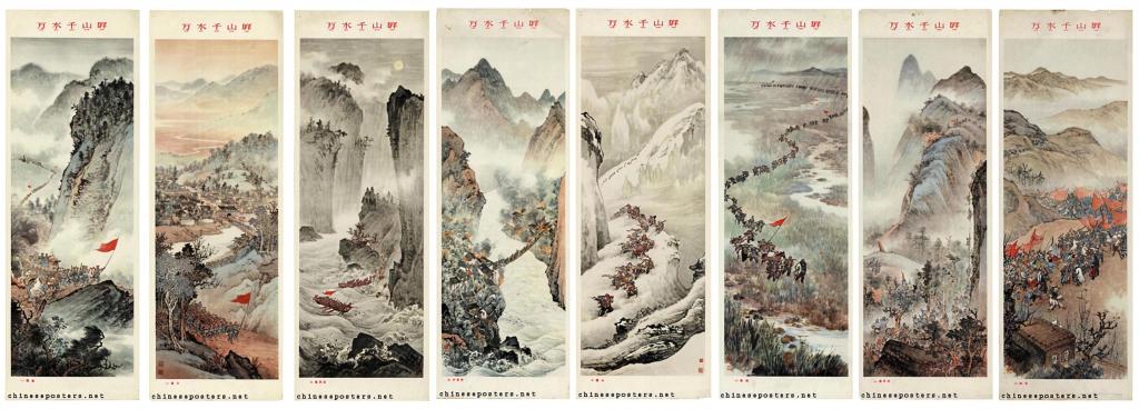 The arduous journey scroll series (万水千山屏) | 1961. Ying Yeping (应野平) and Wang Huanqing (汪欢清). Series of 8 posters. © Chineseposters.net