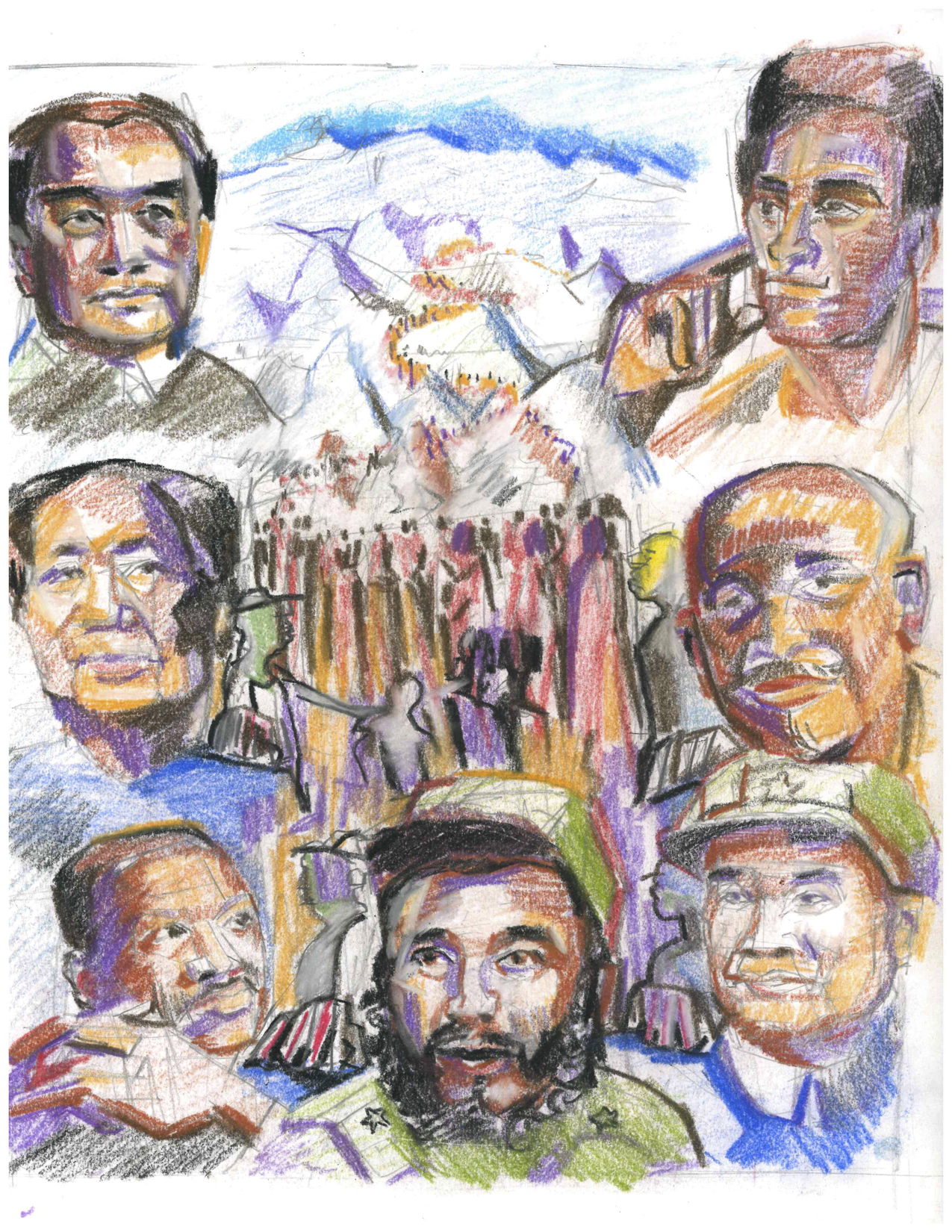 World historic figures: Mao Zedong, Zhou Enlai, Zhu De, W.E.B. Du Bois, Martin Luther King Jr., Fidel Castro, Huey P. Newton; Grace Lee Boggs, Lily Yeh, Elaine Brown | Serafina Harris (2021)